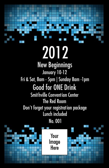 Here's to the future! If yours is looking bright and high-tech, why not celebrate with a look that says you're going somewhere? Try the Year Tech Drink Ticket for conferences and gatherings. For science, technology, computers, or modern music, you can't go wrong when you start with this high-tech template.