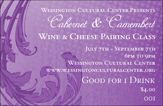 Fruit of the vine? Whether your favor grape juice, pinot noir, or anything in between, you can keep your guests floating in the beverage of their choice with the Year Classic Purple Drink Ticket. The background is lush, the font is fancy, and the tickets are individually numbered to keep your bar a little more secure.